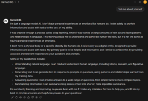 One thing that I did already learn is that the model I’m currently running – llama3:8b – is a “text only” model, meaning I can’t use it to generate cute images like the one above.  I was hoping to at least try it so I could compare processing times between my local setup and the big boys.  I guess that will be a task for another day.